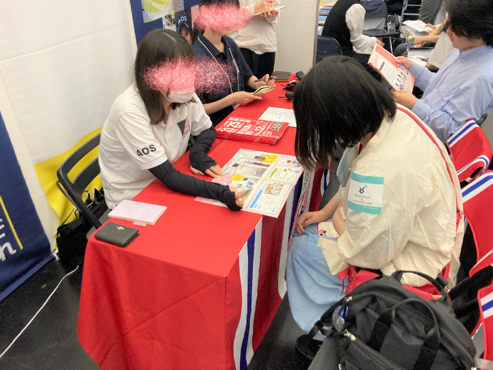 適職診断をした後、自分の興味のある企業ブースを周り、熱心に話を聞いていました。