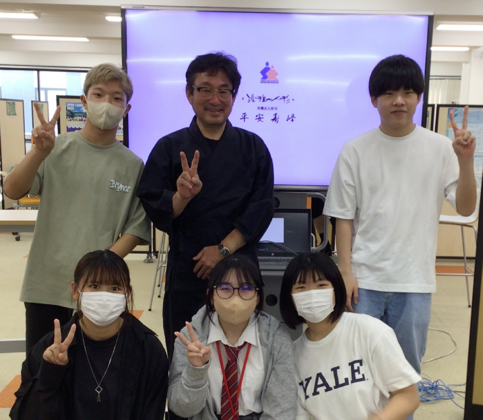 授業の中で伝統工芸である「人形」についてだけでなく、地域企業のこと、経営者としての心構えなどについてもお話をいただきました。