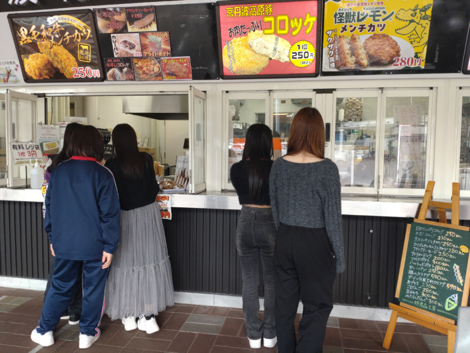 途中のサービスエリアでは美味しい食べ物でテンションを上げます