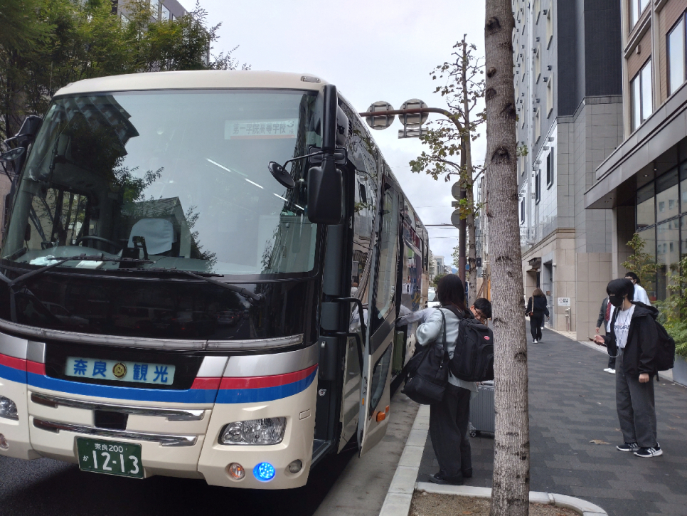 貸し切りバスに乗り込んで「行ってきまーす!」