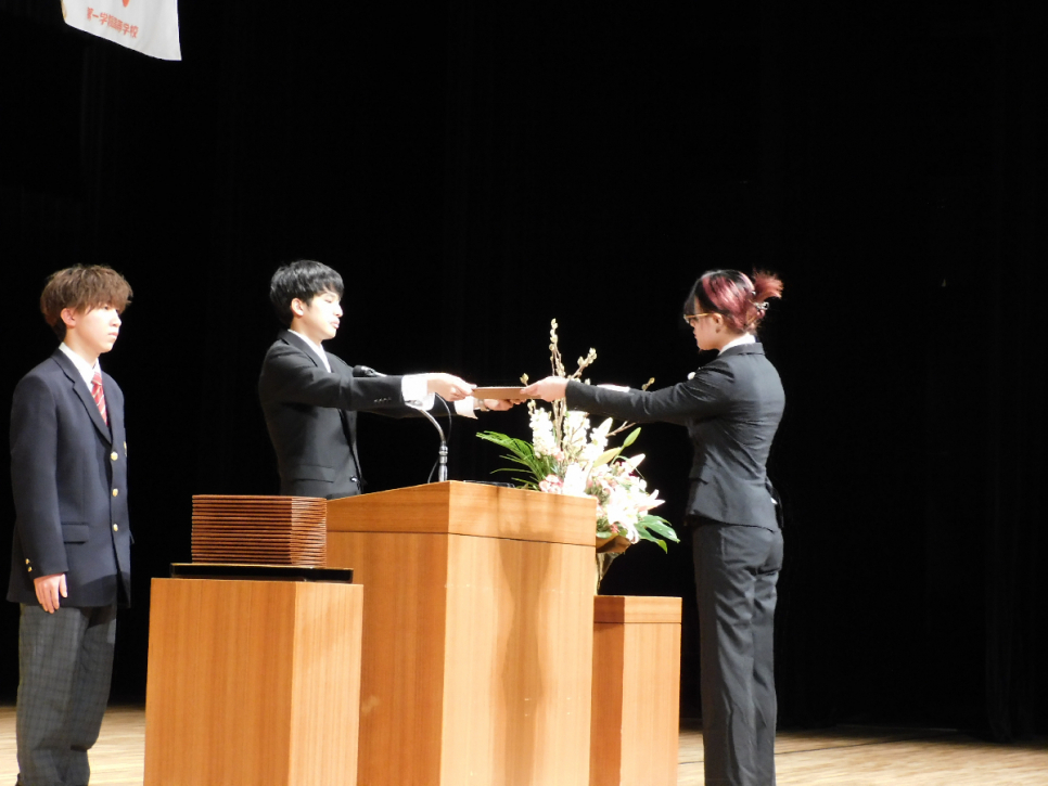 たくさんの保護者や来賓の方々、在校生達に見守られながら、1人1人キャンパス長より卒業証書を受け取る姿はとても立派でした。