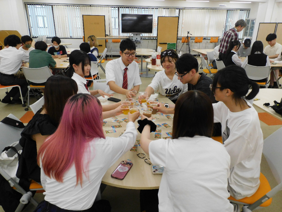 ピアサポのメンバーによる企画で、ジュースやお菓子で乾杯しながら色々なゲームを楽しんでいました。