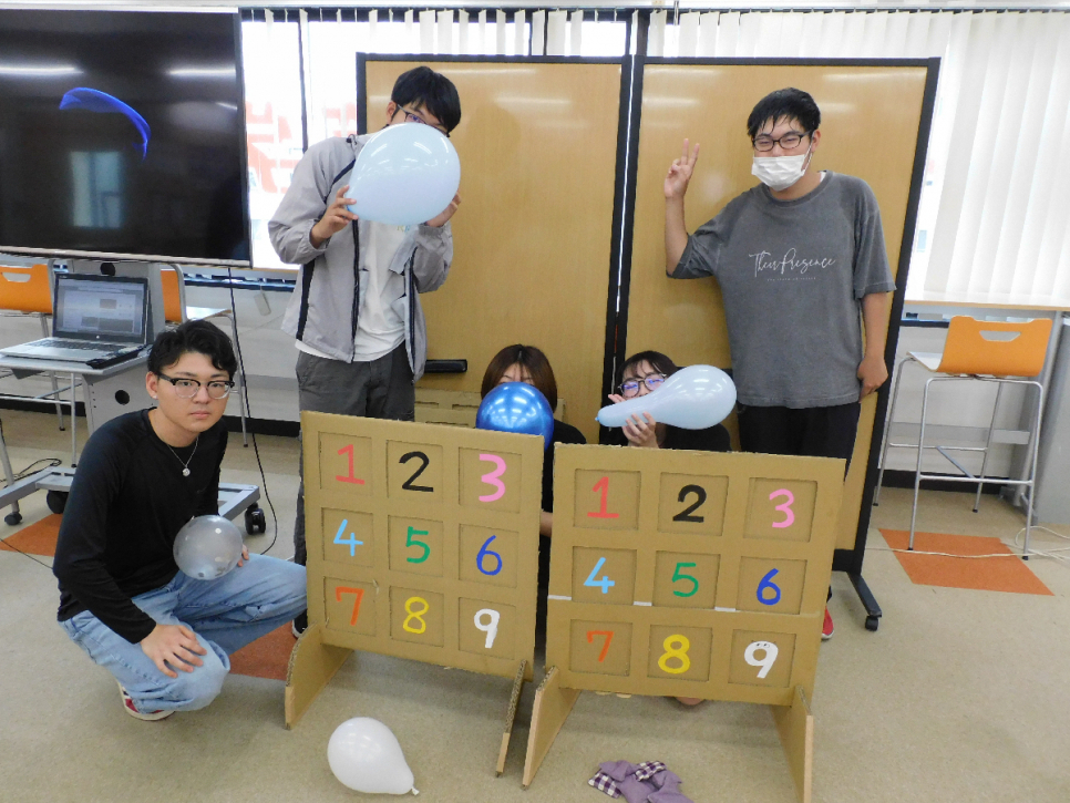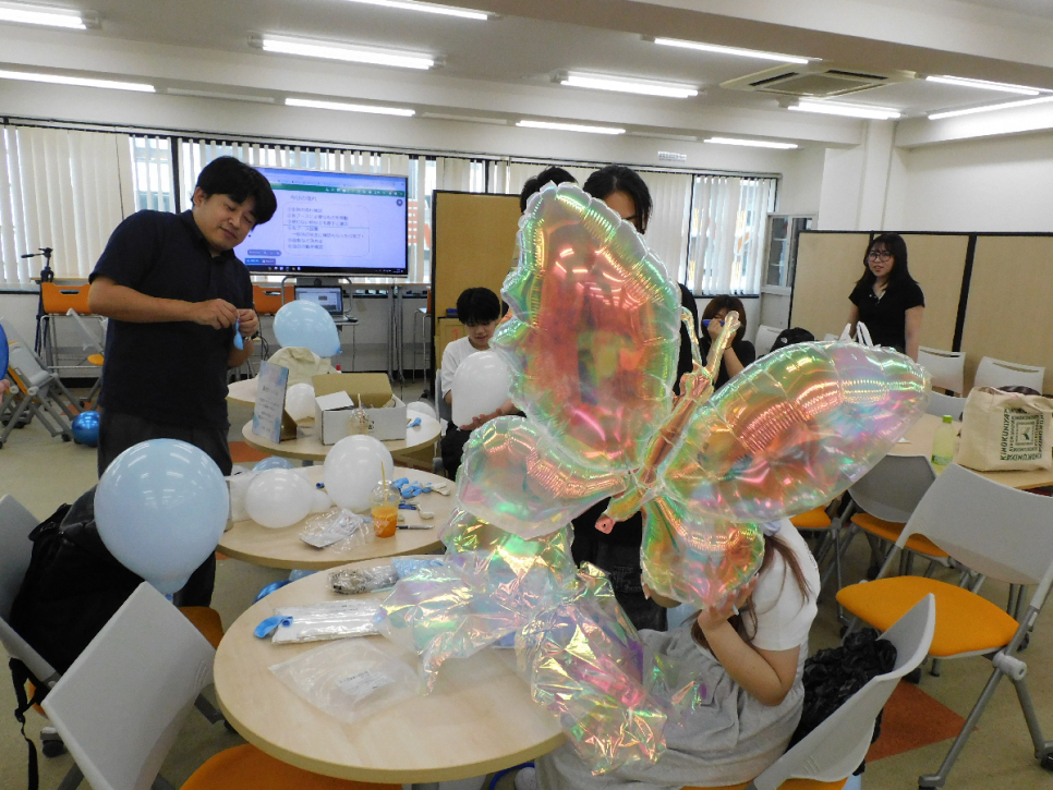 キャンパス長も生徒と一緒に頑張って風船を膨らませていました。