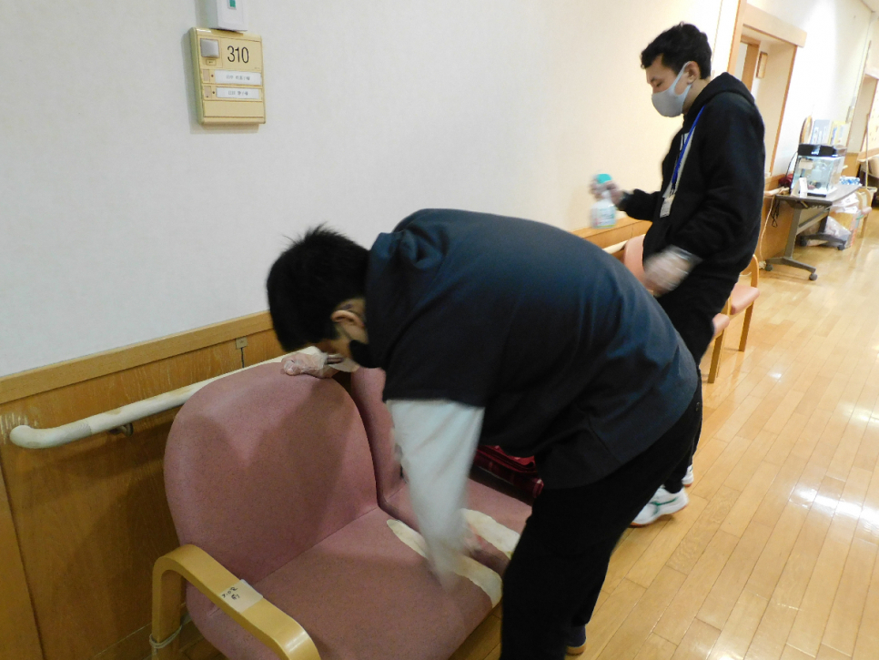 利用者の方とお話をしたり、施設の清掃をお手伝いしています。