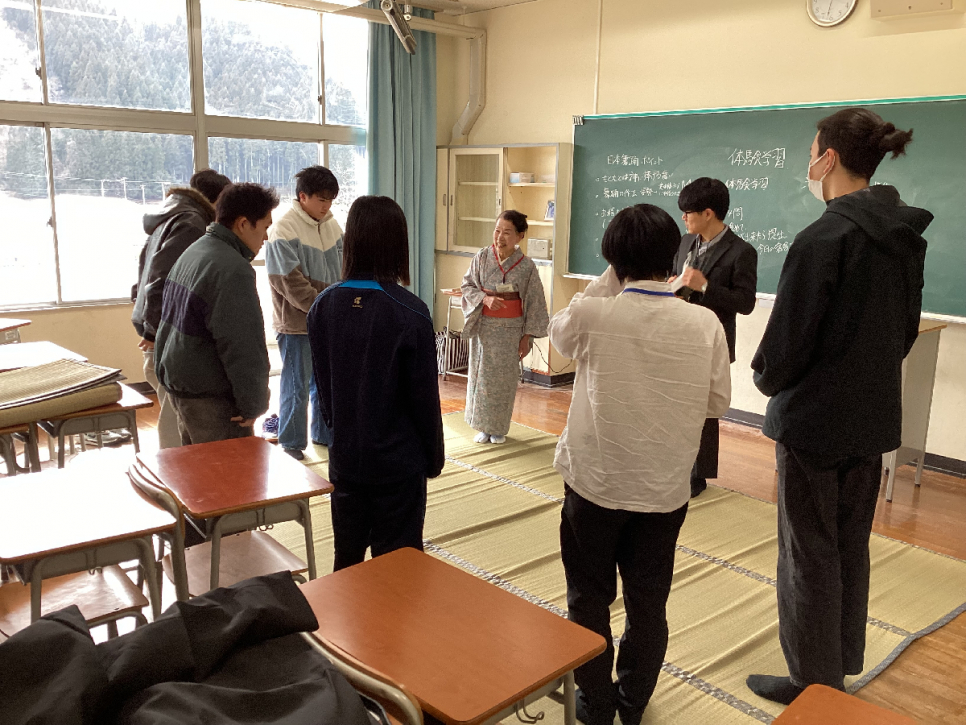 体験授業での伝統工芸や日本舞踊、体育の授業など、養父校ならではの授業に生徒たちもしっかりと取り組んでいました。