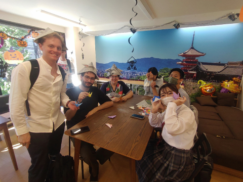 異文化交流会第一学院高等学校 京都キャンパスです! 今回のテーマは「折り紙」。GenkiJacs京都校の生徒さんたちと、鶴や兜、手裏剣を作りながら交流しました。留学生の中には「折り紙初体験!」という方も多く、細かい作業も丁寧に取り組んでいらっしゃいました。生徒達も英語... -