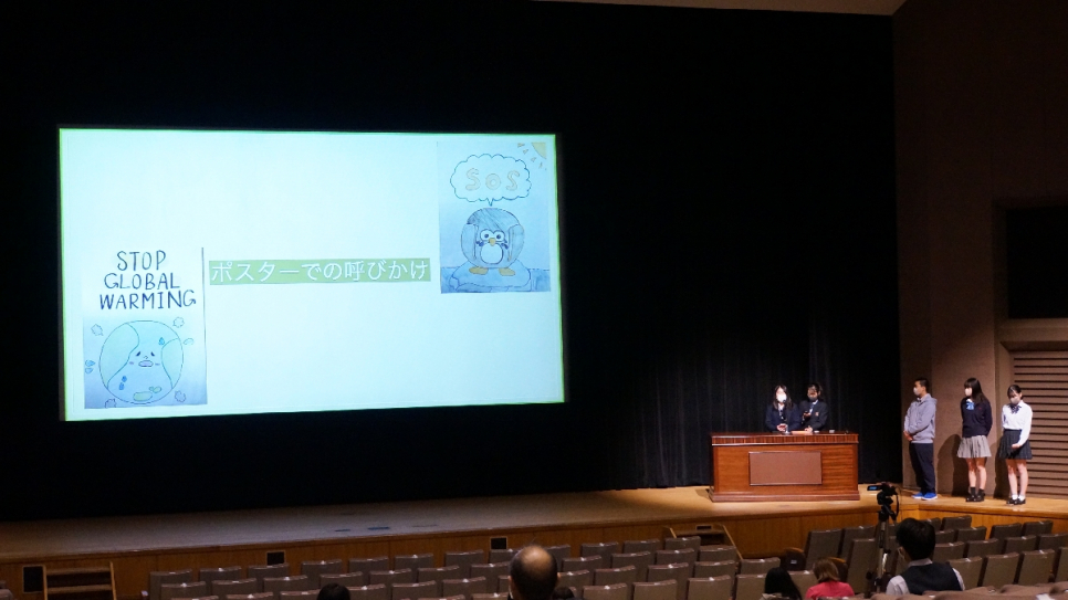 No.6「地球温暖化」地球温暖化について私たちにできることを。実際にポスターなども制作してくれました!そしてスライドの完成度がすごかった…!