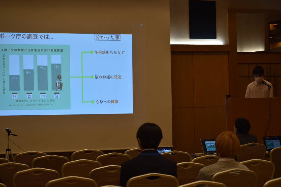 No.7:運動と気分の関係性。グラフなど聞き手が分かりやすいように工夫された発表でした!リフレッシュや多幸感、健康など運動のメリットを改めて感じます。