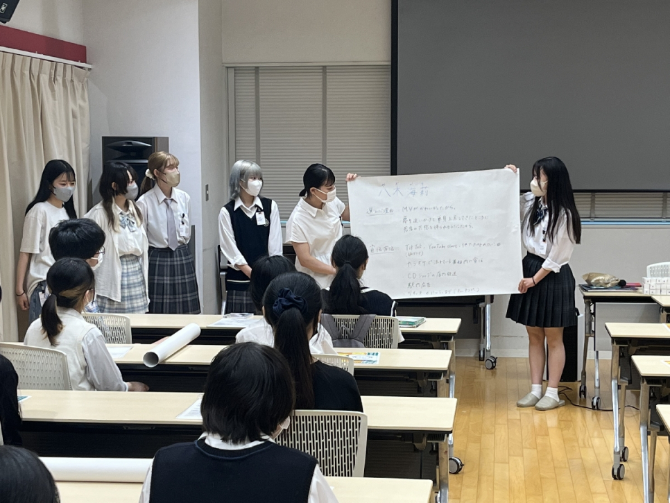 最後はお仕事体験で、グループに分かれてそれぞれが選んだアーティストの宣伝方法を考え発表!