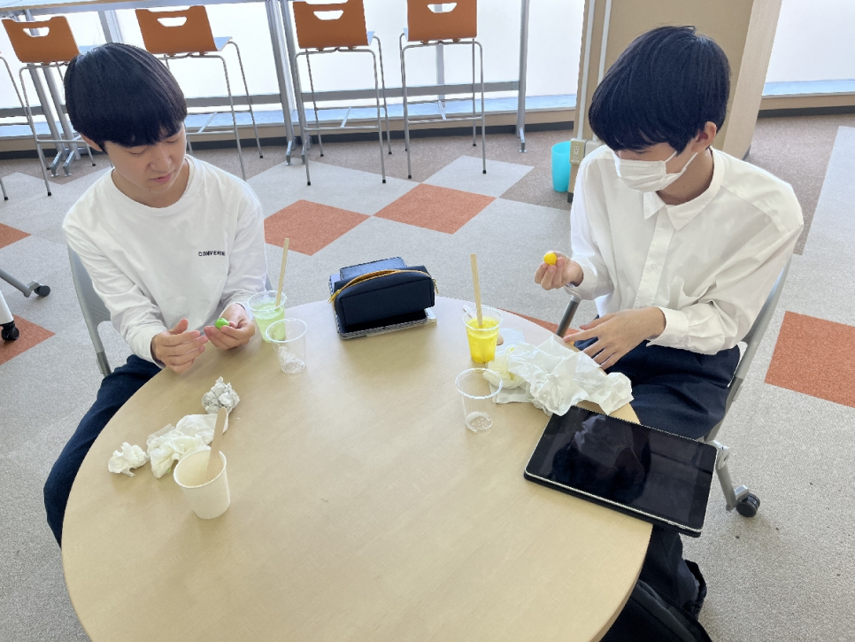 皆で好きな色を選んだり、コミュニケーションをとったりし、楽しみながらスーパーボール作りの原理について学ぶことができました。