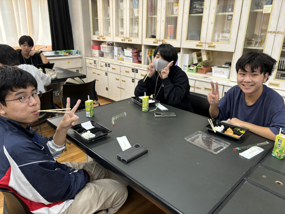 昼食は皆でお弁当を食べました!