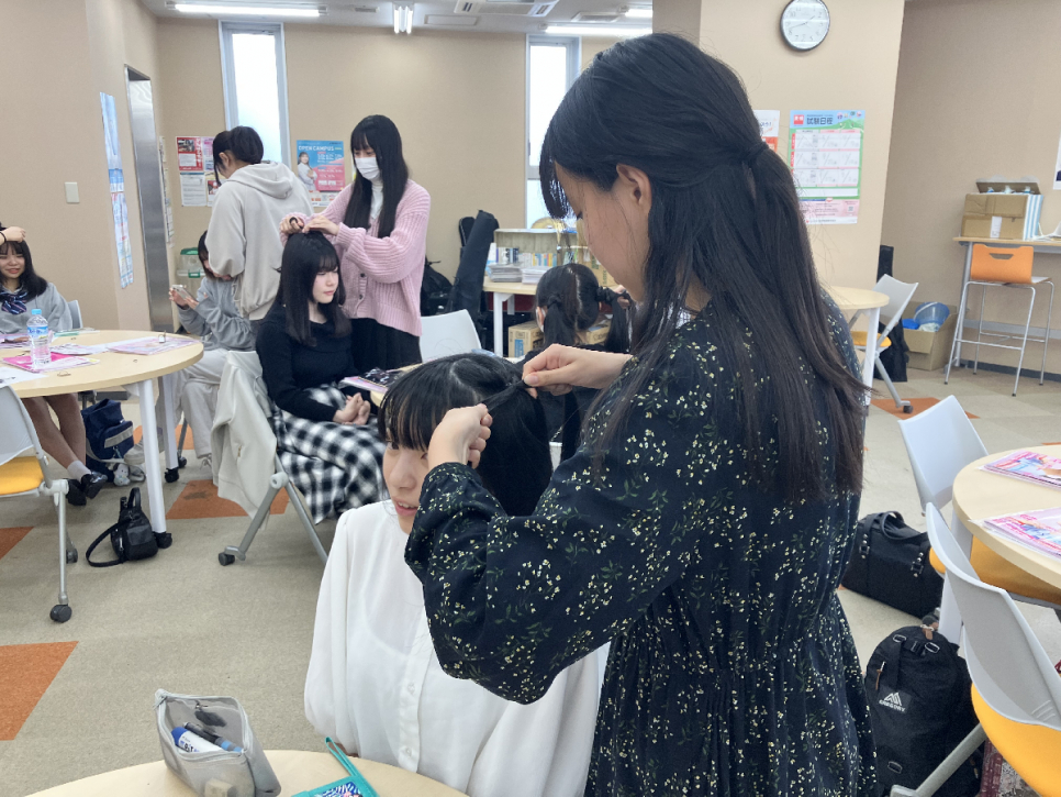 実際にヘアアレンジにも挑戦しました!楽しそうですね!