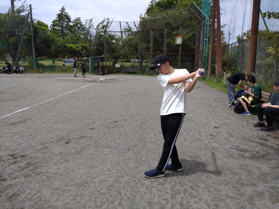 応援で来てくれた子も「打ってみたい」と言ってくれたので、経験者の子が打ちやすい球を投げ、しっかり打ち返していました!!「応援のつもりだったけど打つのも楽しい!」と野球を楽しんでくれていました!!