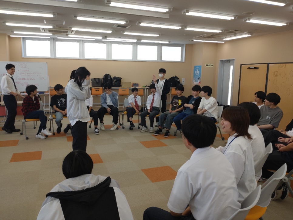 ピアサポーターとして活動している在校生が考えたオリジナルゲームなど簡単な遊びを通して交流を深めました◎