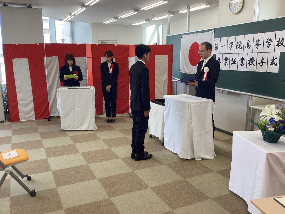 第一学院高等学校では、9月と3月に卒業式があります。 9/25(木)に9月卒業生の卒業式を行いました!