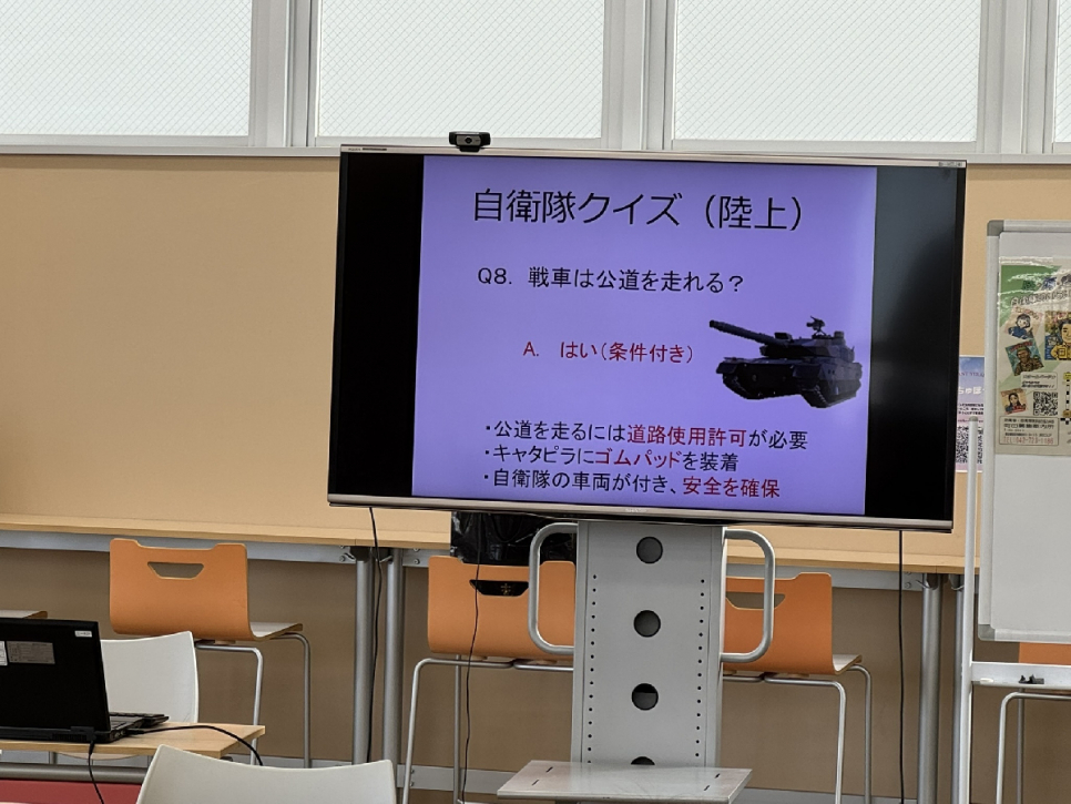 「戦車は公道を走れるか??」などの”自衛隊クイズ”もあり、楽しく学ぶことができました〇