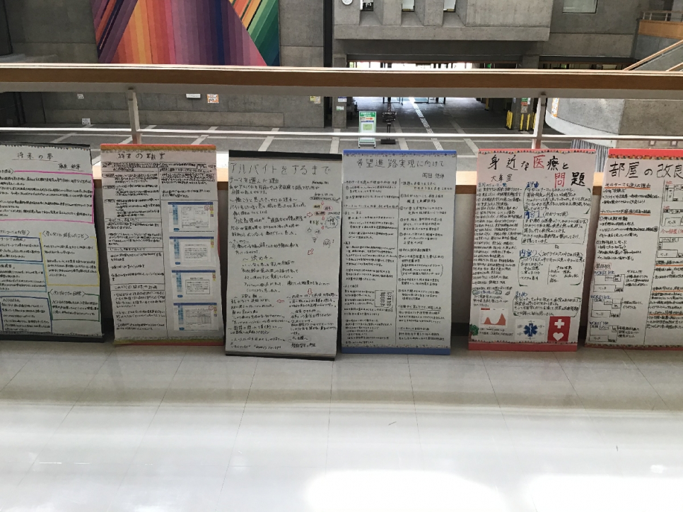 そして、今回、半年間の成長の記録をポートフォリオにまとめ、今回、パネル展示形式とプレゼン形式で各生徒が発表しました。