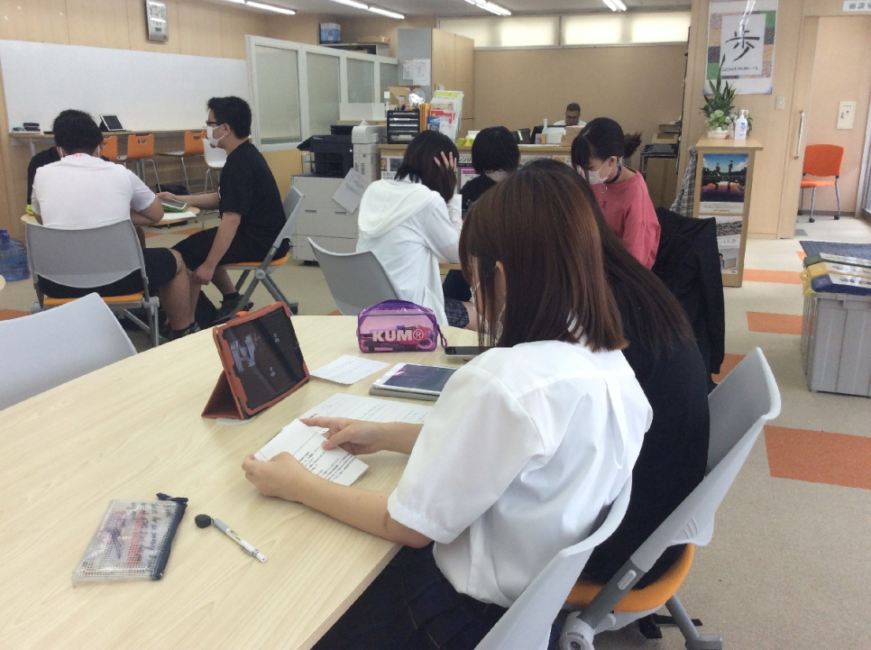 オンラインで参加した生徒も交えて、