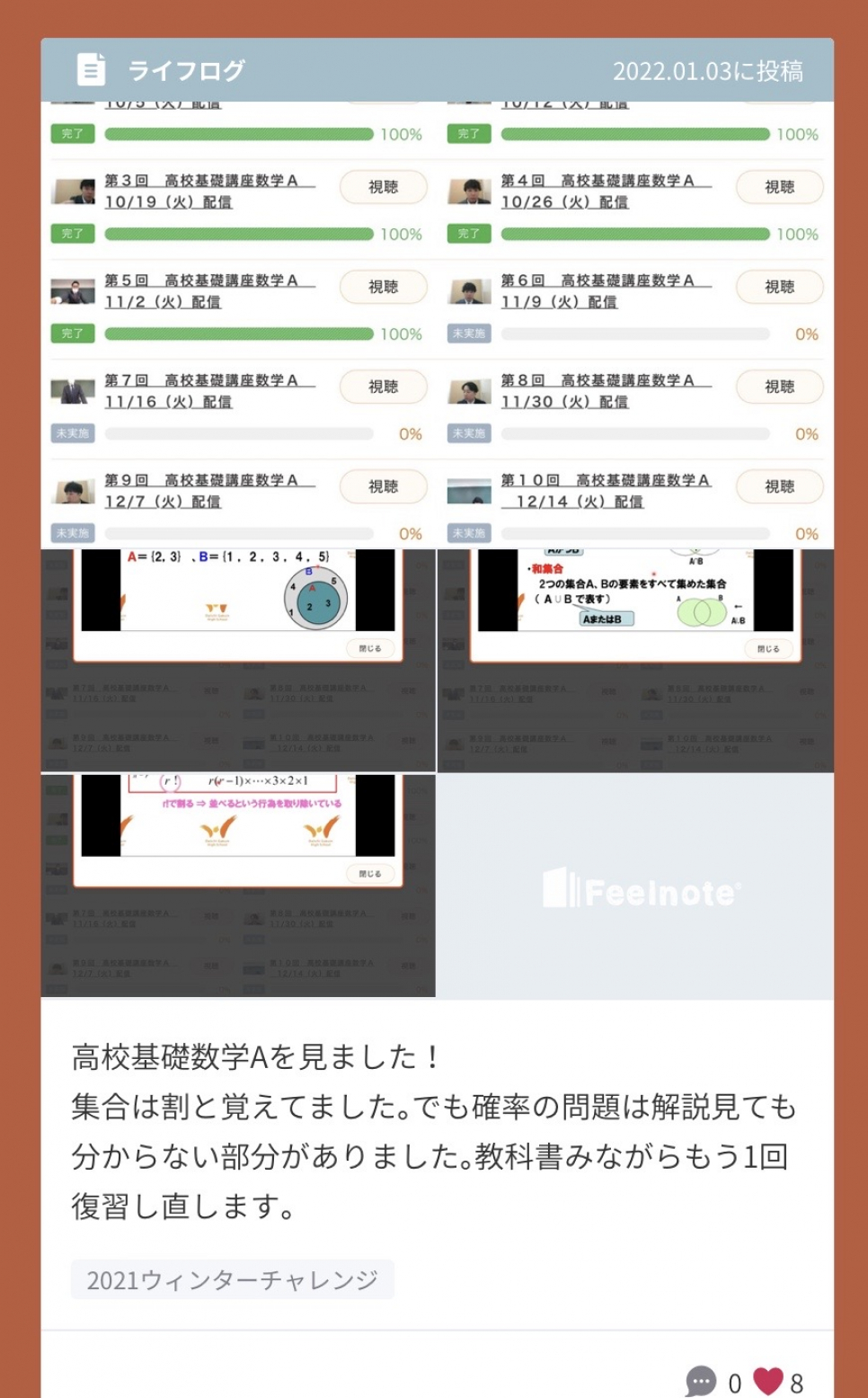 「ライフログ」と呼ばれるログで生活や学習の様子を記録しました。