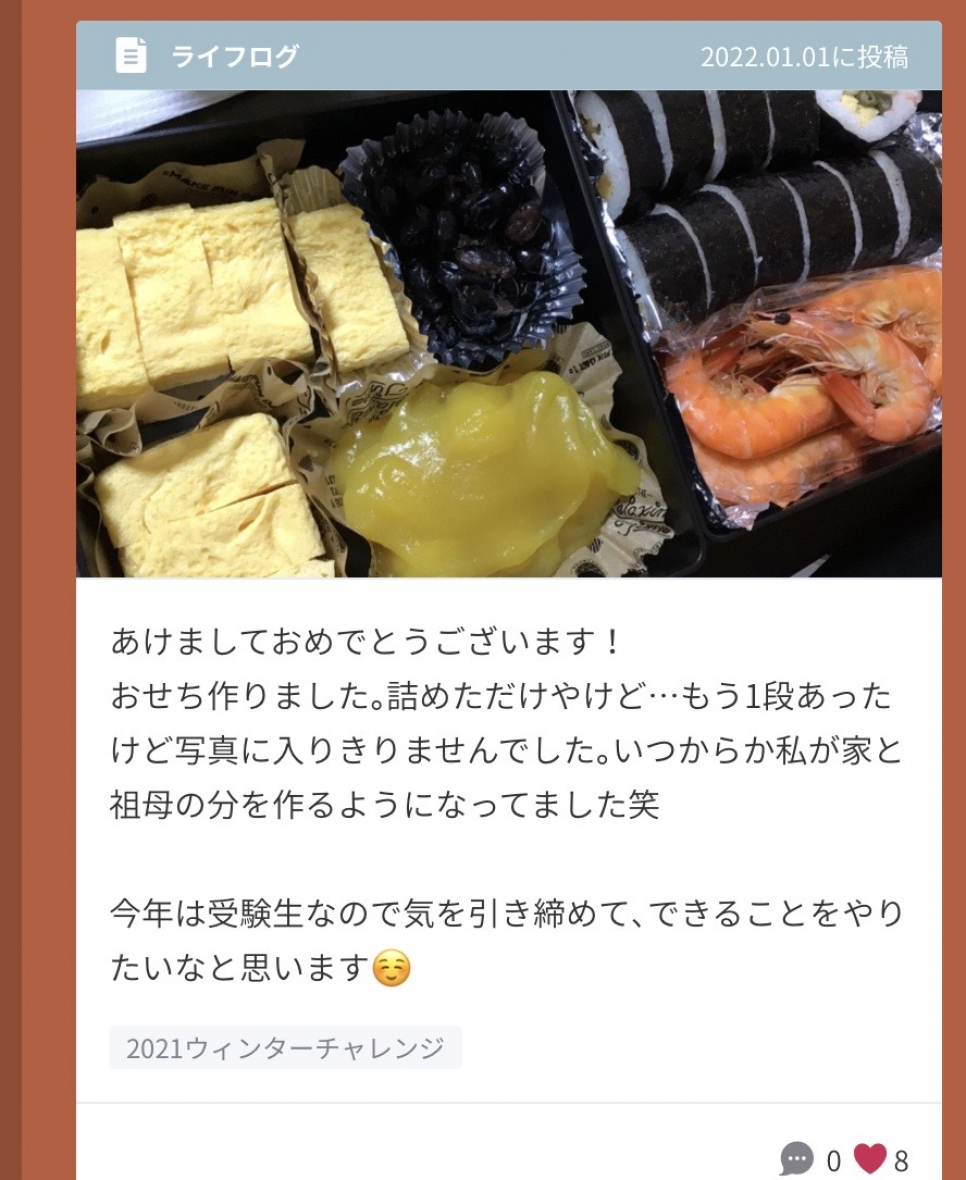 冬休み中は趣味や日常生活のことを共有してくれました♪