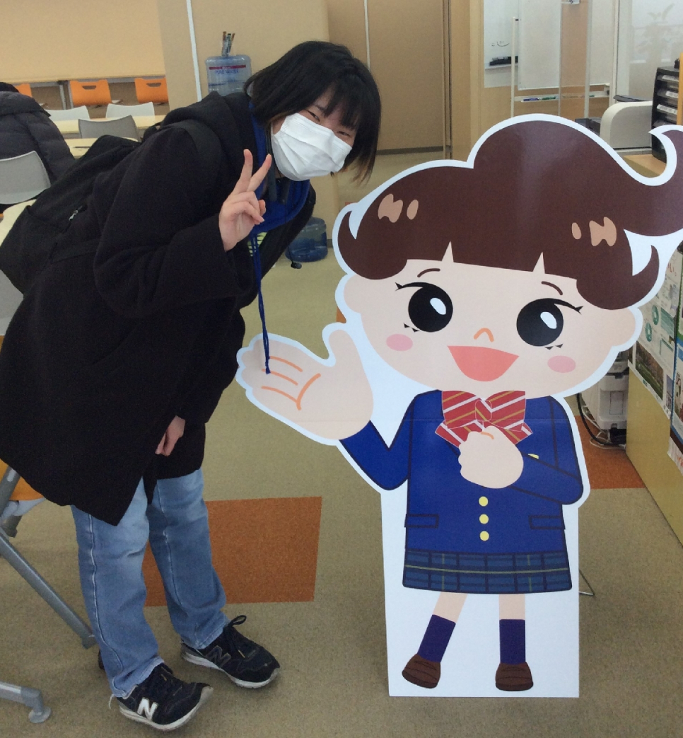そんな新しくなったキャンパス内を撮影するため、パネルになった「いちこちゃん」「いちろうくん」が松山キャンパスにやってきました!