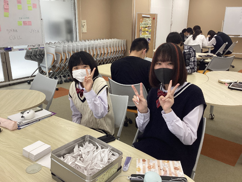 松山キャンパスでも空いた時間を使って、折り鶴を折り進めています★