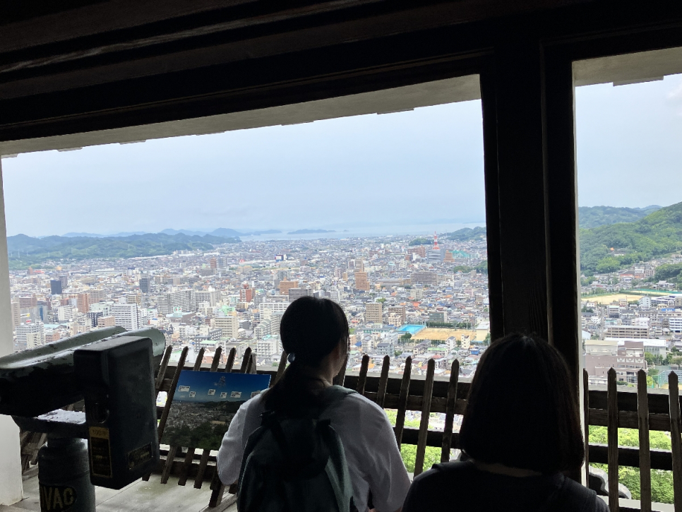 先日、レクリエーションとして松山城の見学へ行きました!(^^)! 午前中に出発し、お城の入り口までのんびり登山。 天守閣の最上階は、松山の街を一望できる絶好のロケーションでした(/^^)/