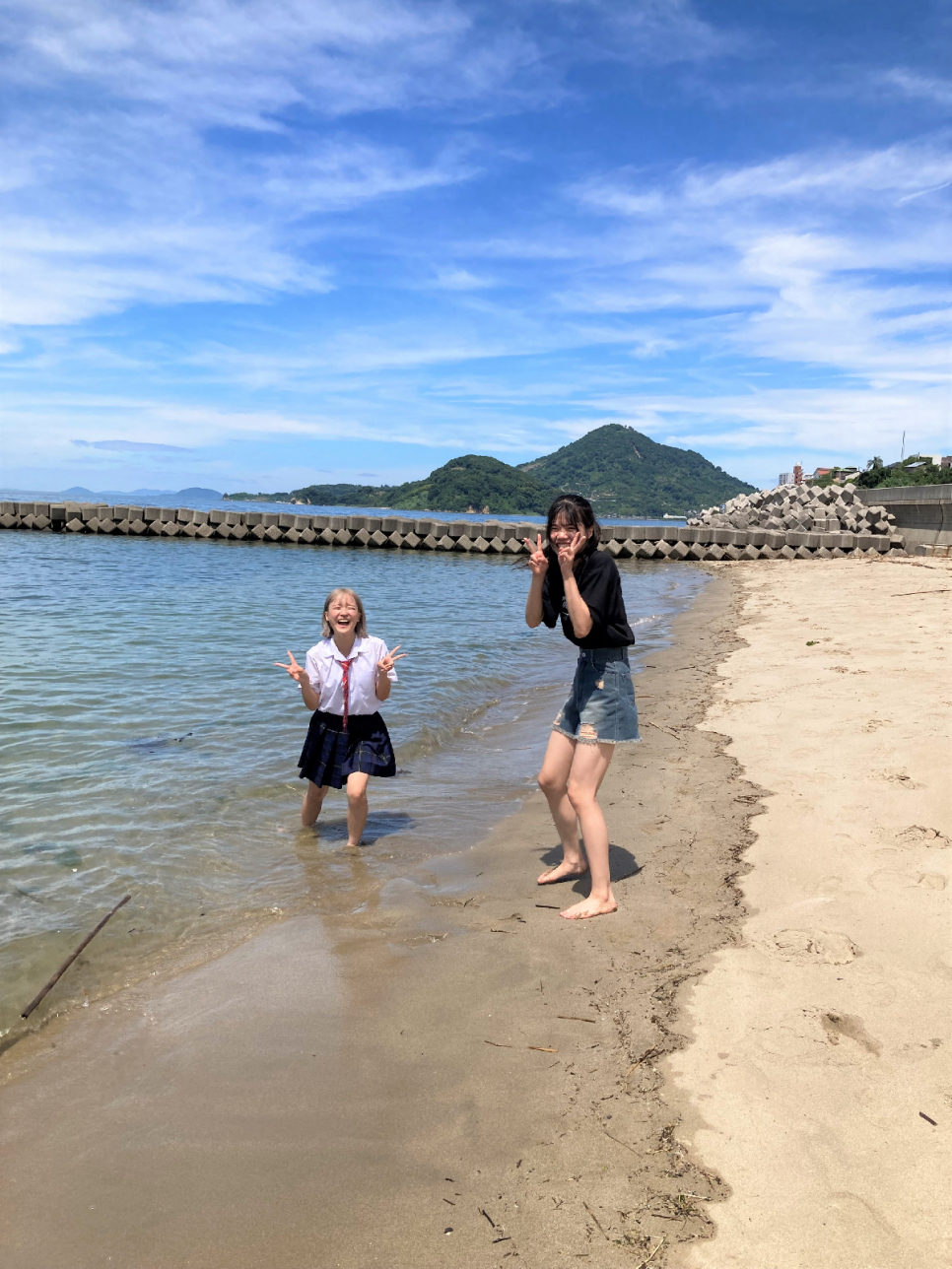 夏空の良い天気だったので、海に足をつけて涼んでいる生徒もいました!