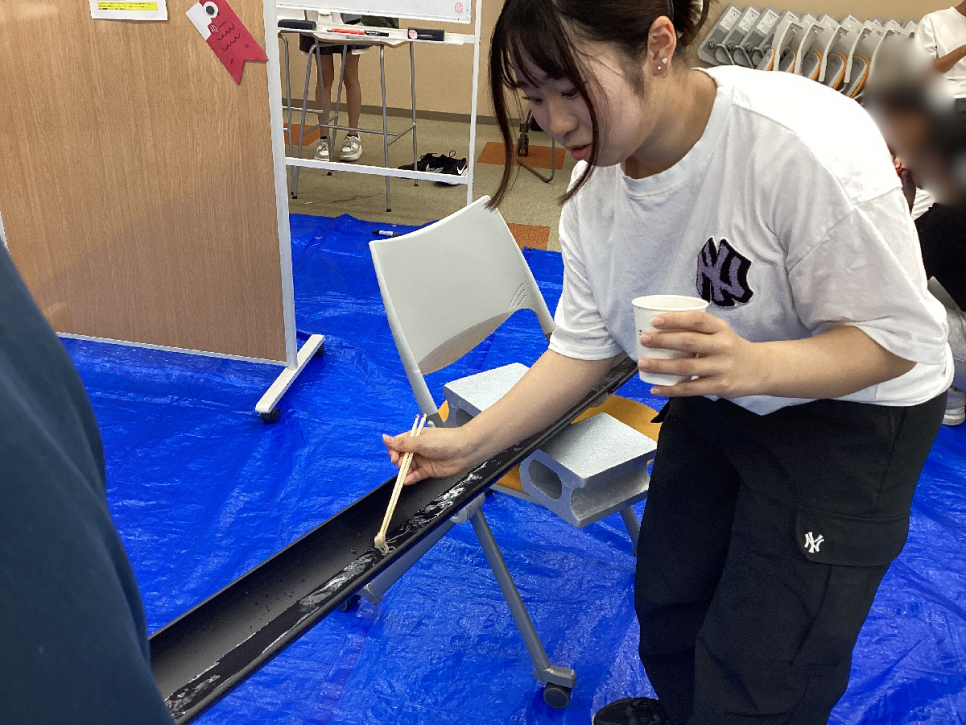 キャンパス内にレールを設置し、そうめんを茹でて、薬味を準備して、、さっそくそうめんを流していきます♪