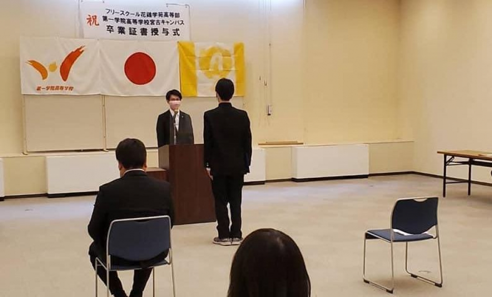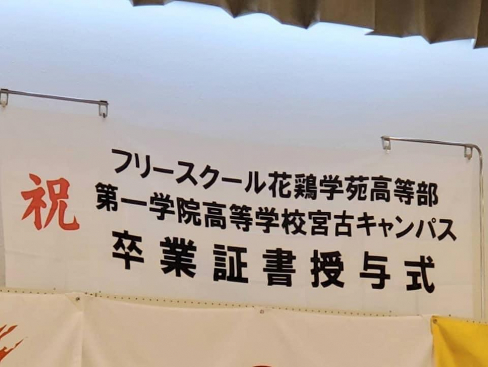 3月22日、花鶏学苑高等部・第一学院高校宮古キャンパスの卒業証書授与式が行われました。