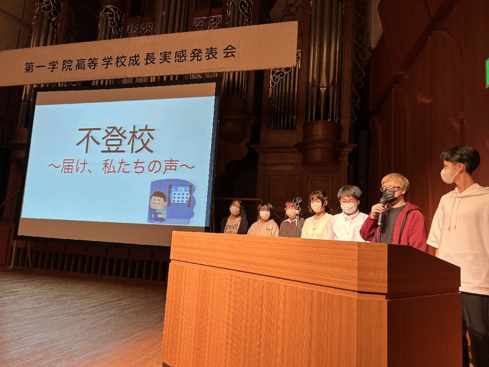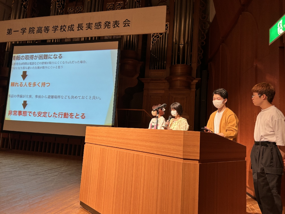 9月21日(木)に盛岡市民文化ホール小ホールにおいて、成長実感発表会を行いました。各グループ緊張しながらも、これまで一人ひとりが学んだことをしっかりと発表することができ、2月に行われる2回目の発表会に繋がる有意義なものになりました。