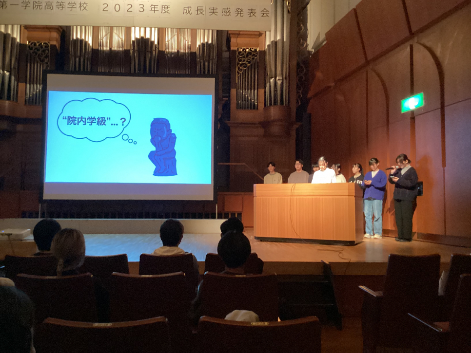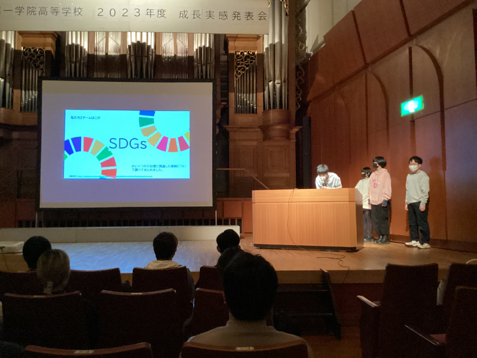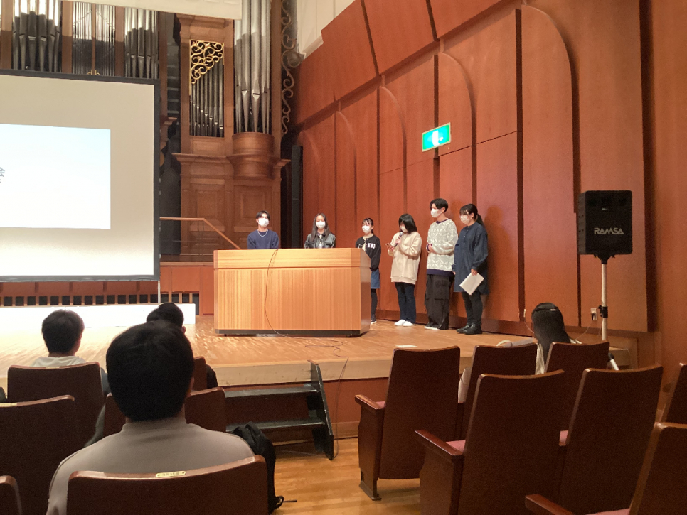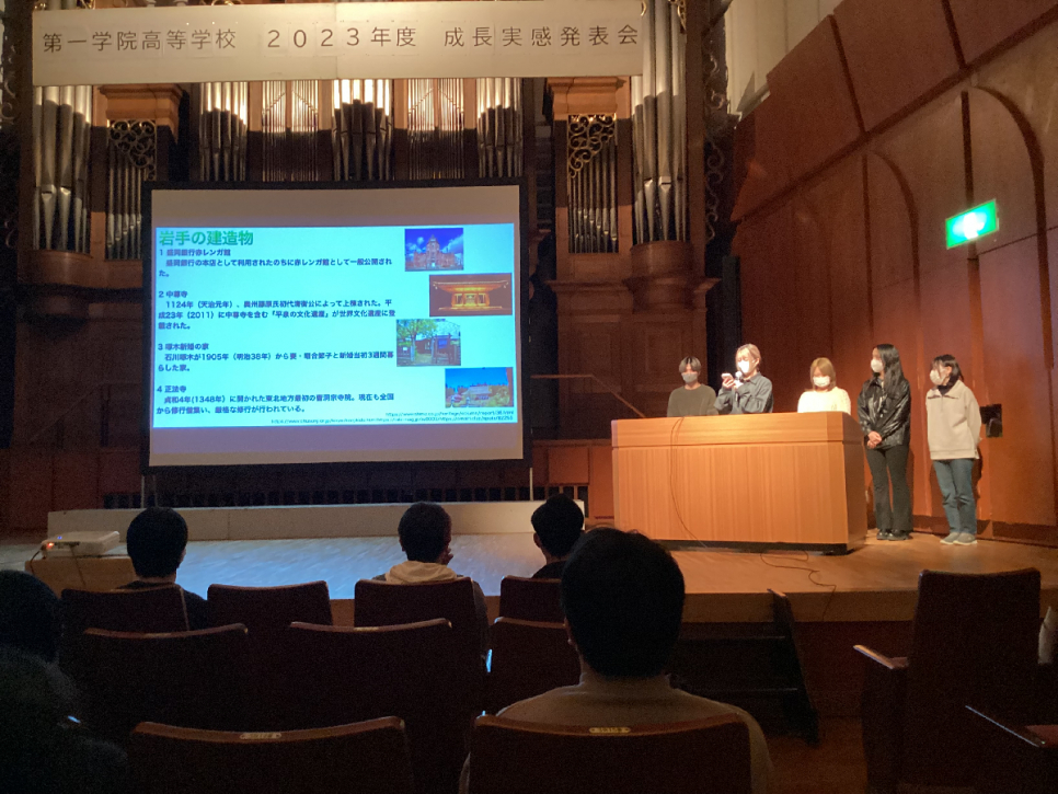 2月20日(火)に盛岡市民文化ホール小ホールで今年度2回目の成長実感発表会が行われました。今回は6つのグループに分かれて、調べ学習や実地調査を行い、それをタブレットにまとめました。また、「祈りの灯火」のグループでは、3.11の復興ボランティアに向けて灯篭づくりを行いました。9月に行った1回目の発表会を踏まえて、どのグループも意見を出し合いながらスライドの作成・発表ができたと思います。
