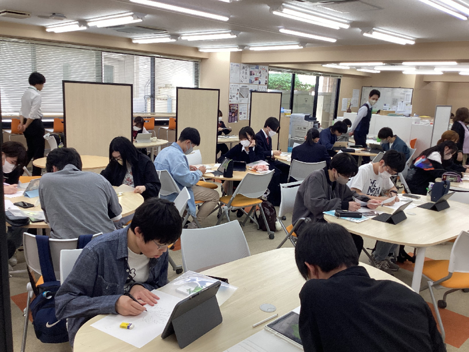 美術のスケッチとの違いも考えながら、みんな真剣に