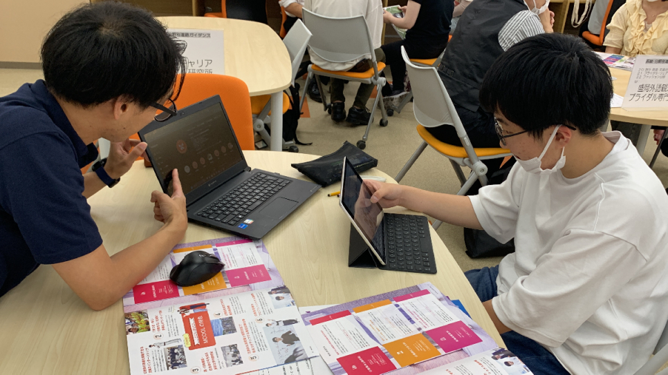 当日はたくさんの大学や専門学校の方にお越しいただき(一部オンライン実施)、生徒に個別に学校説明をしてくださいました(*^▽^*)