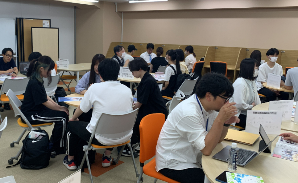 多くの生徒たちが興味のある各学校ブースで話を聞いています♪
