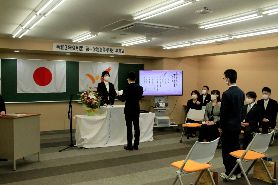 9月27日、令和3年度9月卒業式を長野キャンパスにて挙行し、2名の生徒が第一学院高校を巣立っていきました。