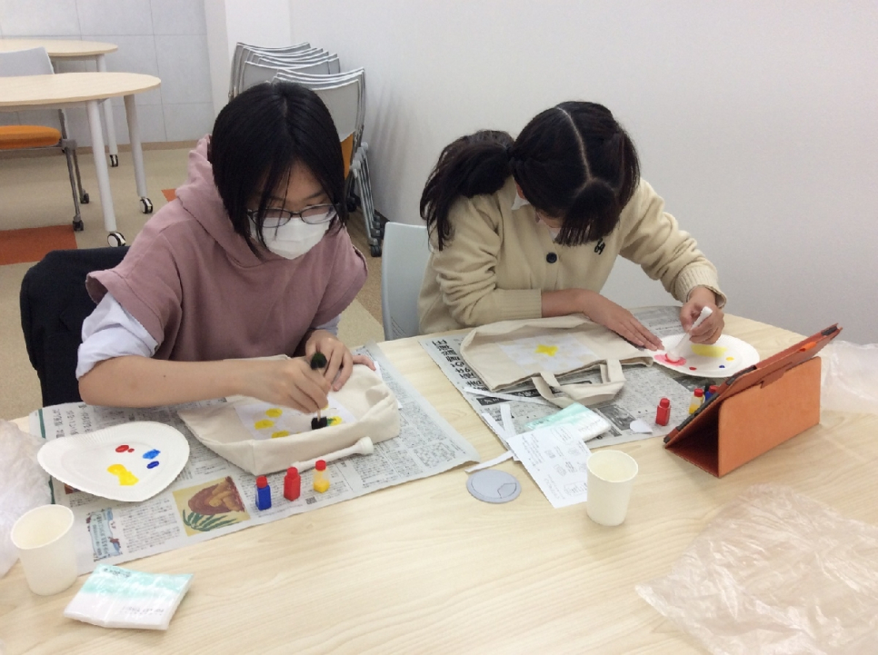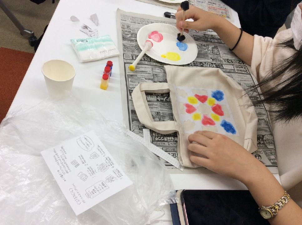 赤・黄・青の3色の色を使って、ランチバックを可愛くアレンジしましたヾ(≧▽≦)ノ