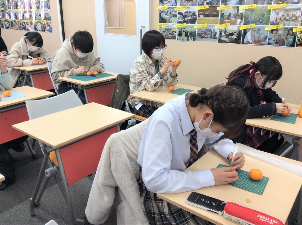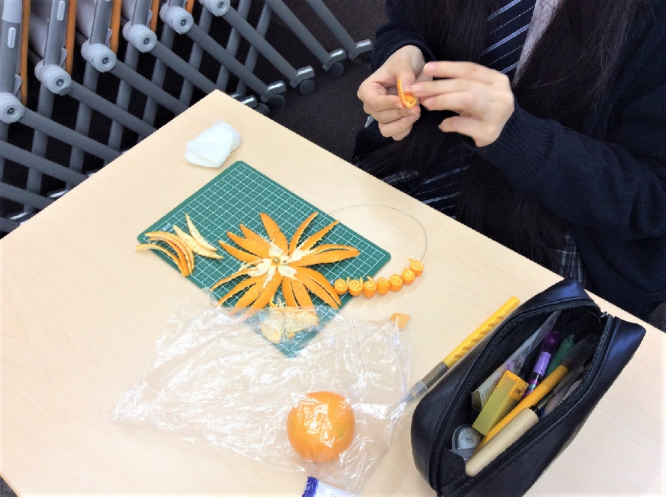 今回生徒たちは、みかんを使ったピールアートを体験しました(^ ^)