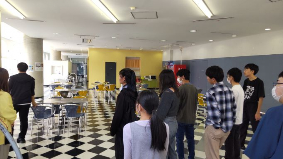 大学キャンパスの中を先輩たちに案内してもらい、広い図書館や体育館、食堂などを見学しました!その後実際に大学の講義も聞くことができました!!