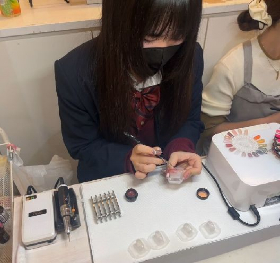 その後は実際にネイルチップを作りました。プロの方からのアドバイスもいただきながら素敵なチップを作ることができました(^^)