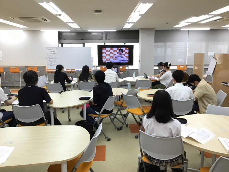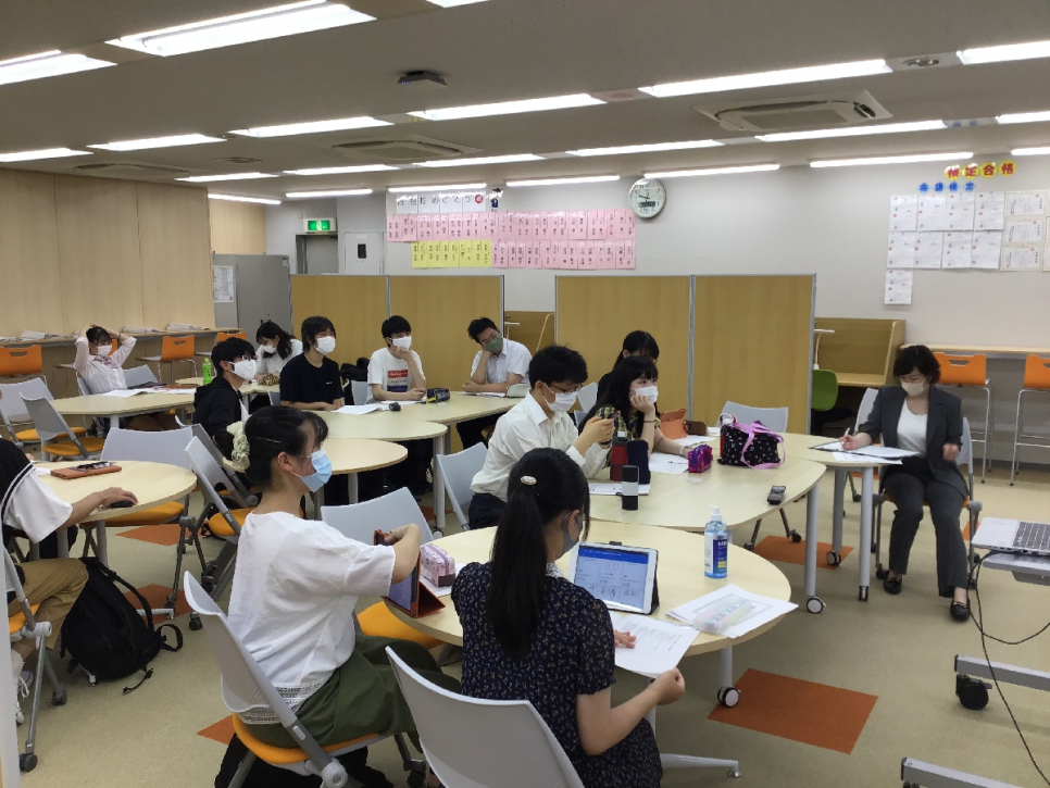 みんな真剣に受講中。自由な空間で2・3年生が混じって受講しています。