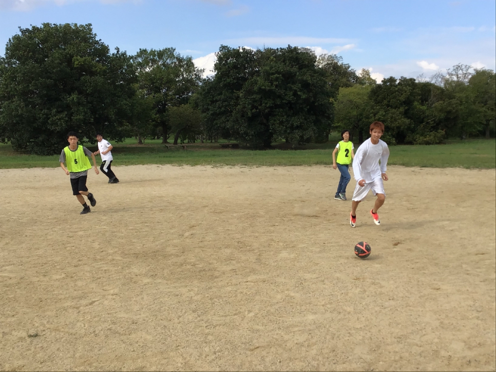 奈良市民憩いの場ではありますが、奈良キャンパスメンバーはこのだだっ広い公園で今年度最初のフットサルの練習をしました。