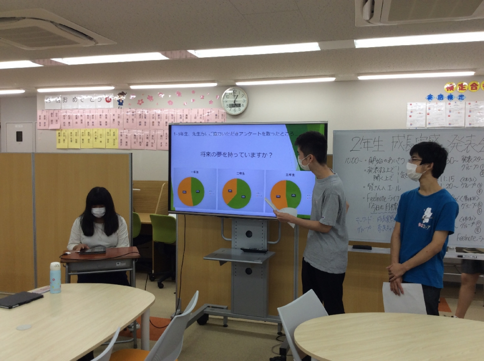 奈良キャンパスでは9月の終わりに1・2年生の生徒を中心に「成長実感発表会」を行いました。