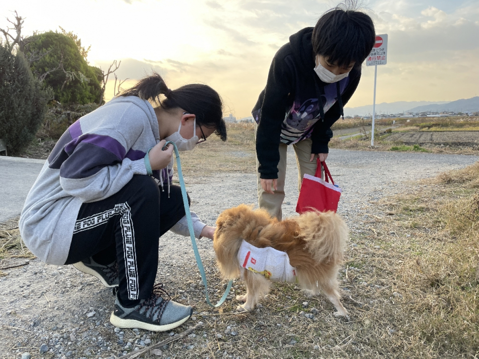 先日、4名の生徒が地域の保護犬ボランティアの活動に参加してきました。
