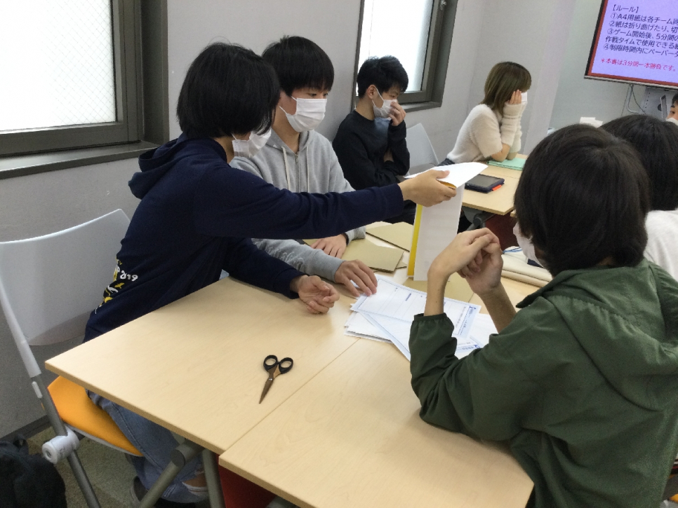 アイスブレイクで、ペーパータワーを作っています!