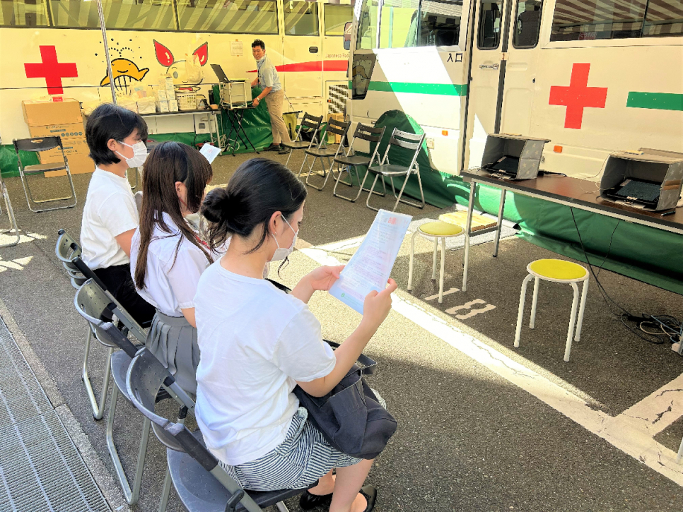 と、希望生徒は保護者の同意書を持参し、献血カーへ。
