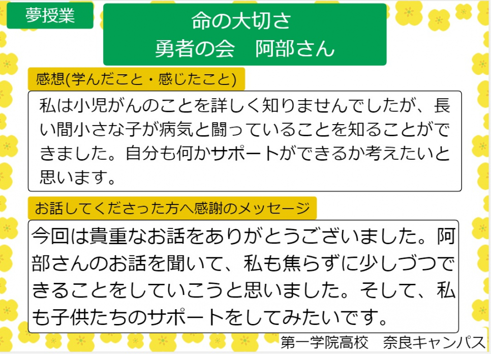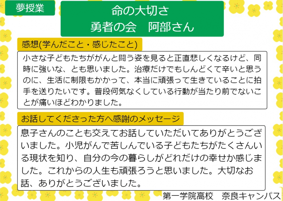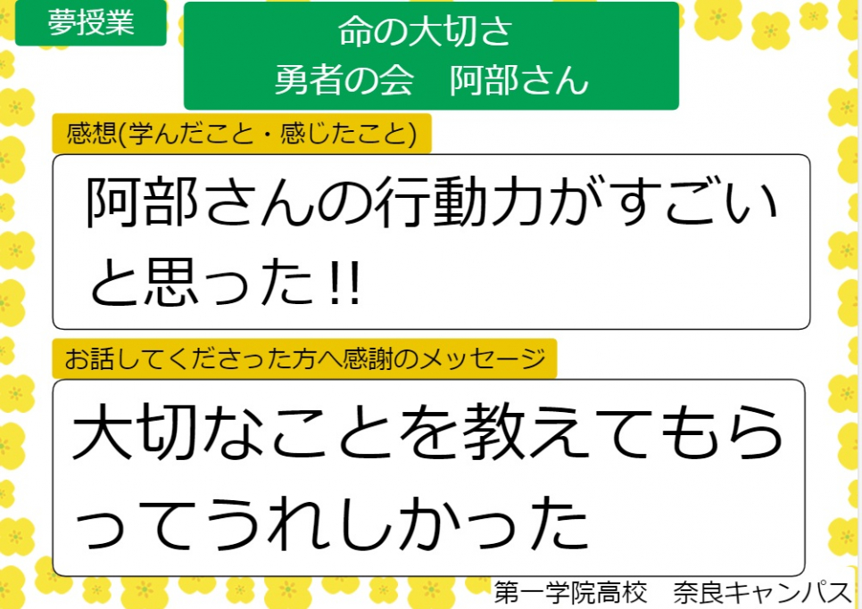 奈良キャンパス通信~ 【夢授業】命の大切さ ~
