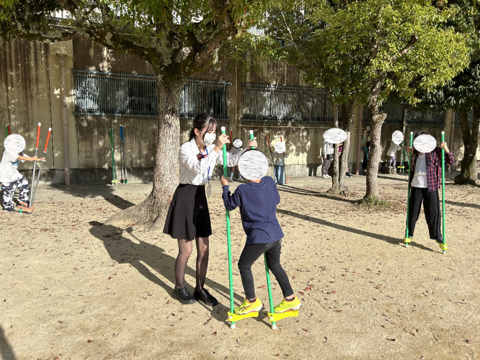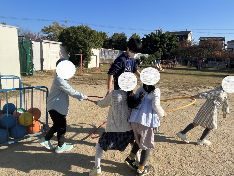 西大寺北小学校での「すいよう遊び隊」ボランティアでは、小学生のみんなとグラウンドで一緒に遊ぶ活動をしています。