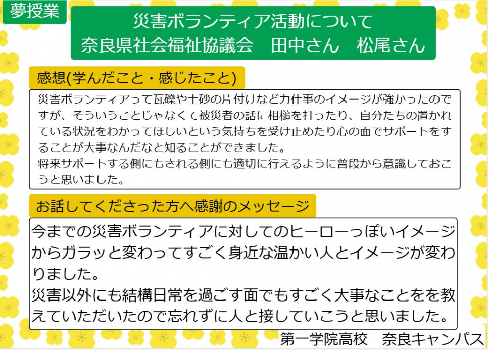 - 奈良キャンパス通信~【夢授業】災害ボランティア活動を知ろう!~