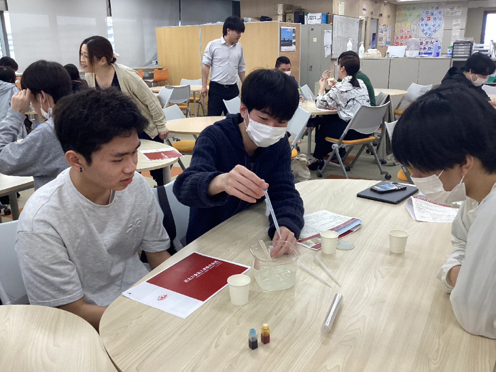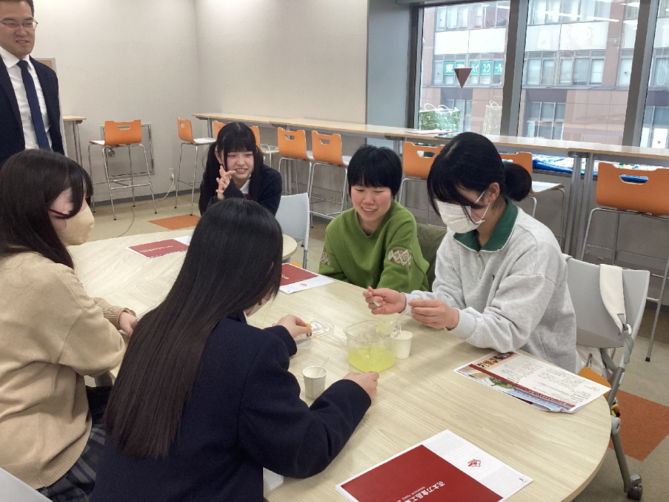 食品製造の体験では、 お菓子の香料や着色料を実際に混ぜてみて、どのように変化するかを実験☆